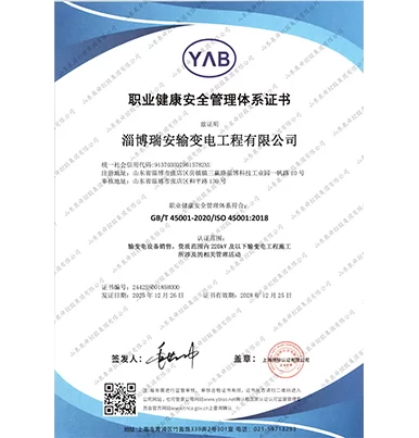 职业健康安全管理体系证书