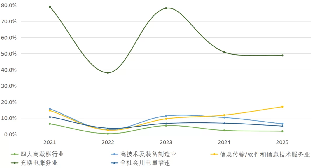 图3 2021—2025年四大行业与全社会用电增速