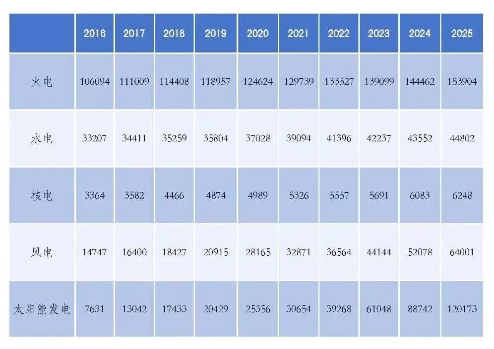 表3 2016—2025年全国电力装机情况(单位:万千瓦)
