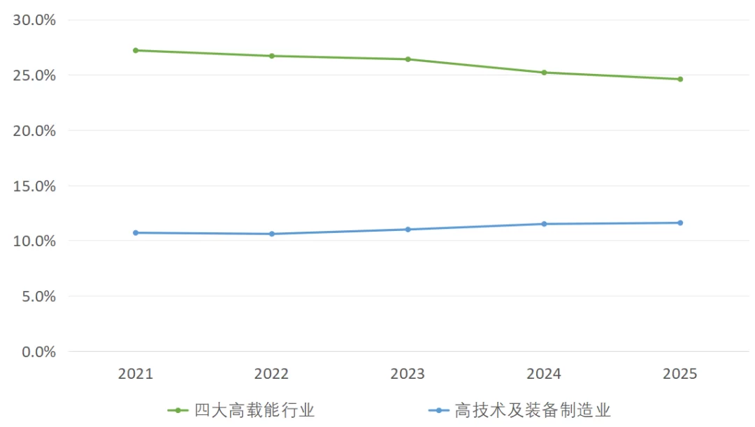 图4 四大高载能行业、高技术及装备制造业用电量占比情况