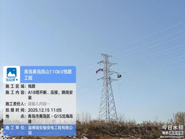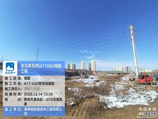 2025年12月16日,瑞安公司所承接的青岛黄岛凤山(西郊升压)110千伏线路工程,顺利完成全长3.726公里的导地线架设及附件安装工作,为该工程后续的送电投运奠定了坚实基础。